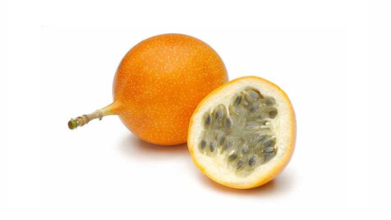 La granadilla es una fruta tropical con cáscara dura y color naranja brillante. Su interior está lleno