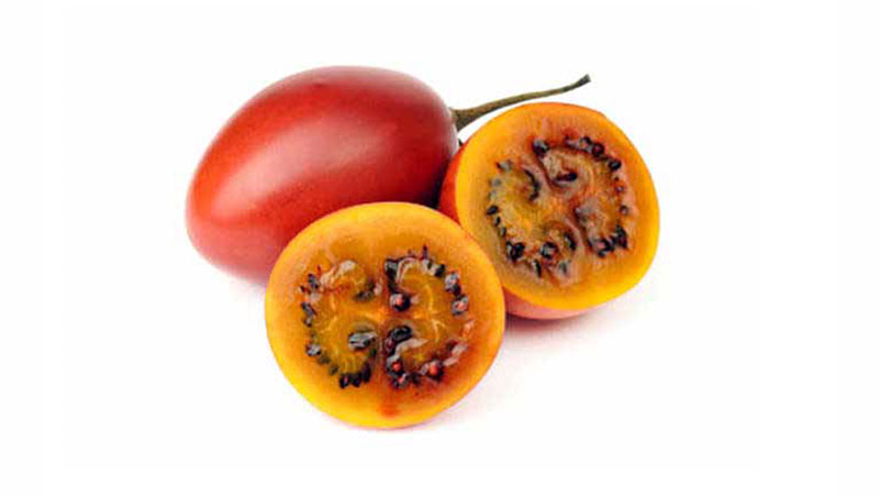 El tomate de árbol es una fruta tropical con forma alargada y cáscara lisa que varía en color, desde