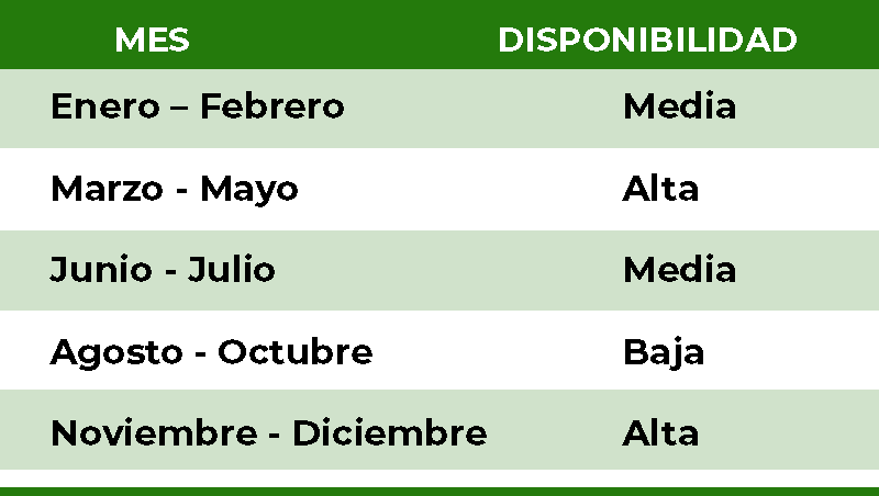 Nota: La producción puede variar según las condiciones climáticas y la región de cultivo.